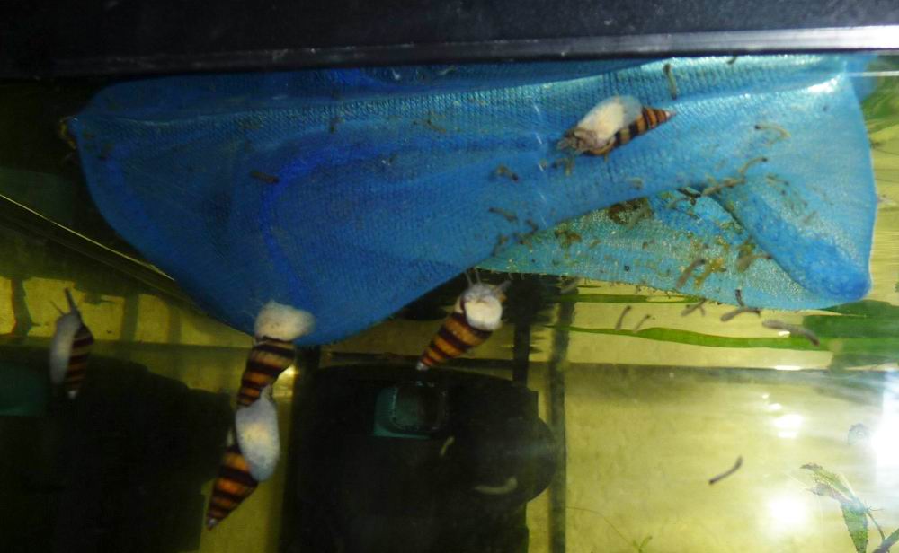 Momentan ist Action bei den Raubschnecken. Ich habe wieder die im vergangenem Jahr in diesem Thema erwähnten Mückenlarven eingebracht und alle Tiere ziehen sich umgehend zu den zappelnden Knäueln.