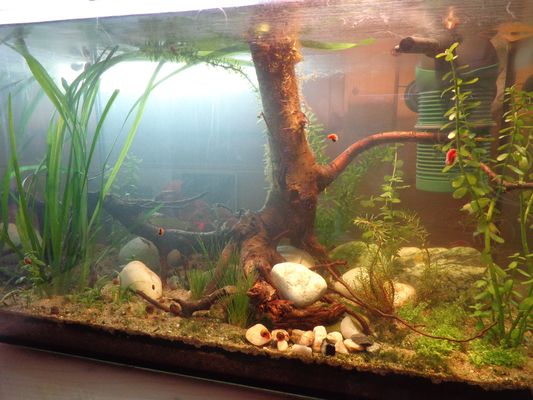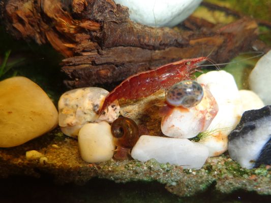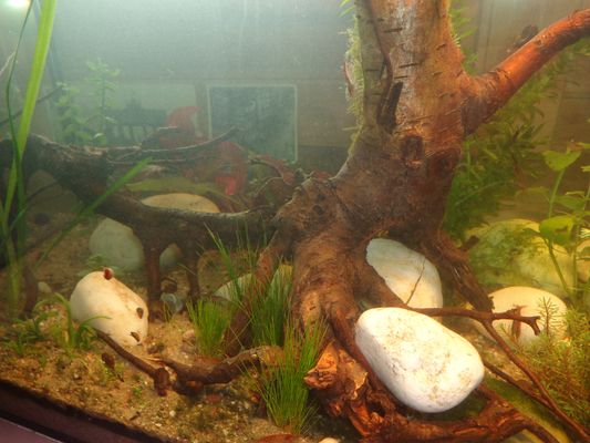 Die Garnelen sind so lebendig jetzt, ihr Lebensraum ist jetzt auch vielseitiger und wie sie auf der Wurzel und ihren Verzweigungen rumturnen,
