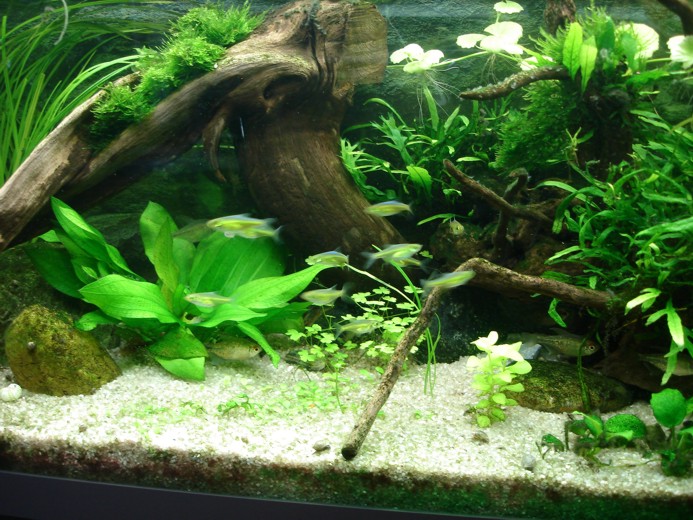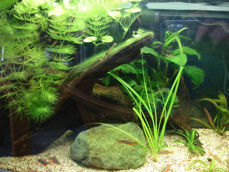 mit dem 75 l Becken krieg ich langsam die Krise... die grünen Pelzalgen befallen sämtliche Pflanzen, auch das Hornkraut... habe am Montag 50 l Wasserwechsel gemacht, danach wurden die Algen noch mehr, die ganze Scheibe ist in 2 Tagen wieder voll... auf dem Wurzeln sieht das noch nichtmal schlecht aus... aber so ganz ohne Pflanzen ? :confused: :wut1: