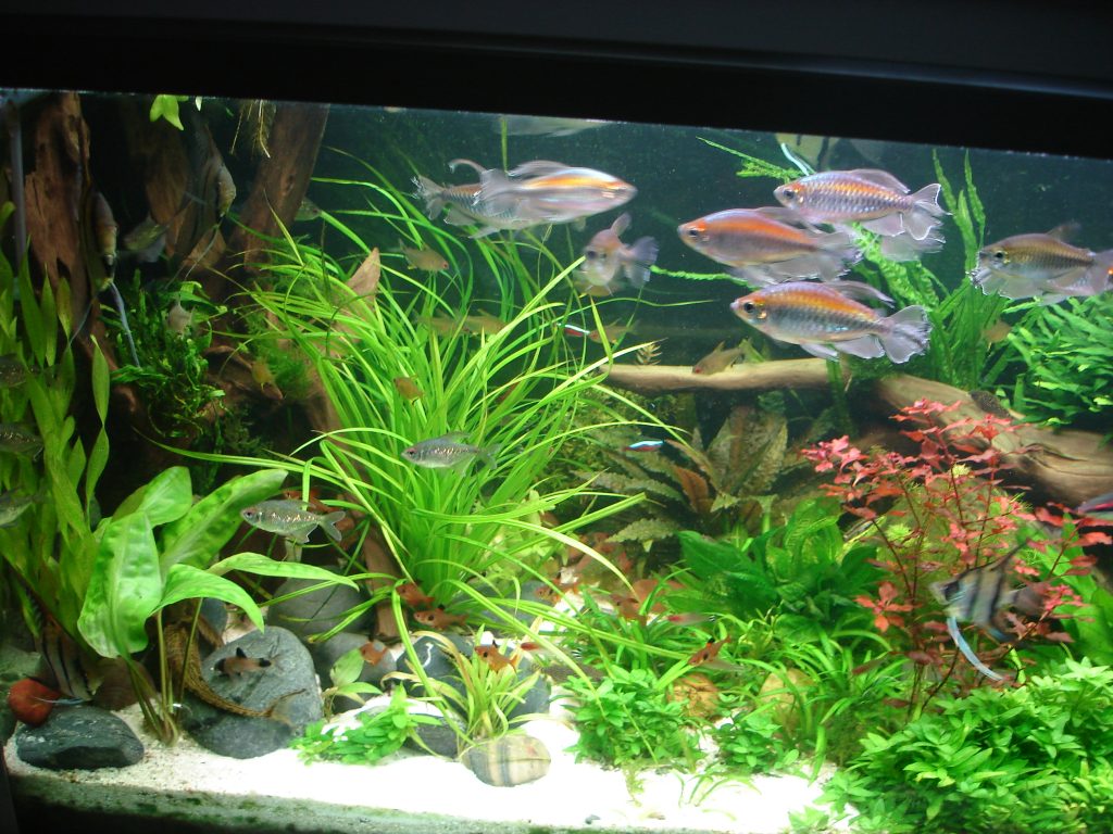 Habe gestern mal gemessen, ich war echt erstaunt, hab den Eheim, der 8 Monate lief mal sauber gemacht... PH nach wie vor 6,5, KH 1, aber Achtung ! NO3 12,5 mg, so wie es aus der Leitung kommt und dass bei dem Besatz, meno --- unbegreiflich.