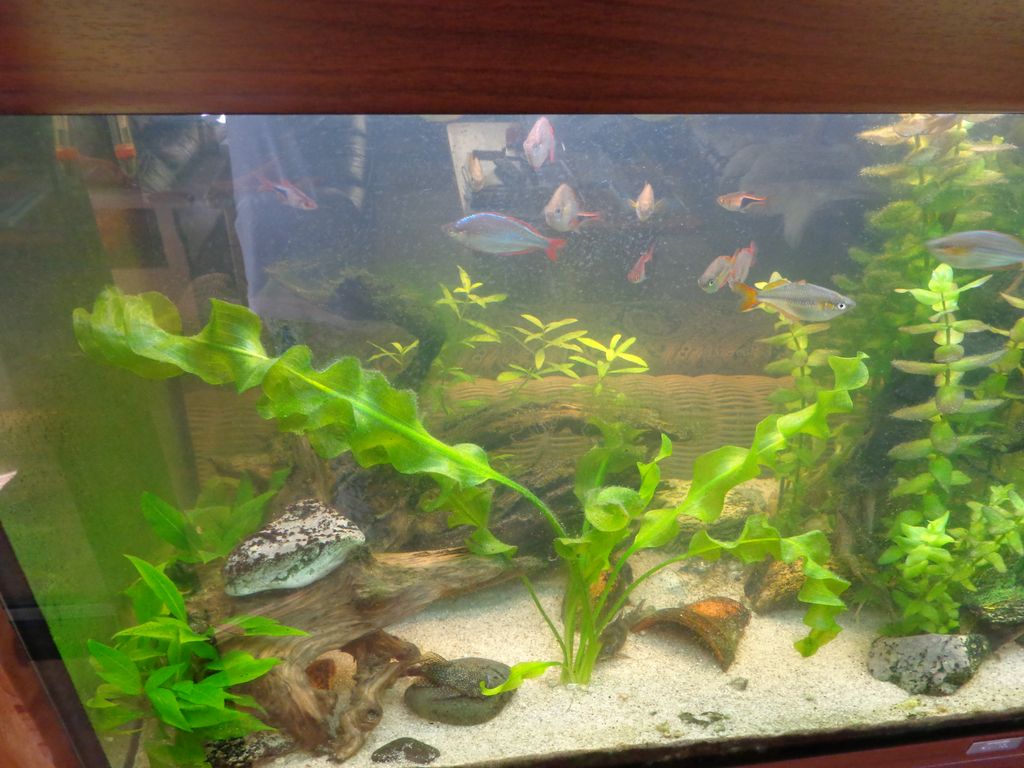 Aber es schwebten richtige Wolken von Algen, die Scheiben waren gänzlich zugewachsen, sowas hab ich überhaupt noch nicht gesehen, die Fische hatten keinen Platz mehr und mir ist es ein Rätsel wie das innerhalb kürzester Zeit sich so verändern konnte.