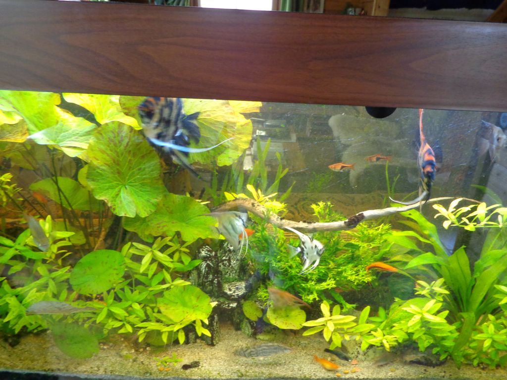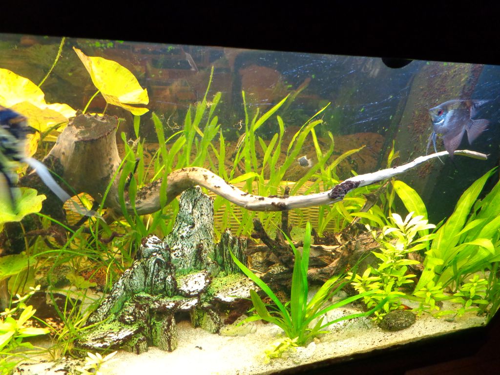 Gedacht und getan, erst dachte ich nach dem Einsetzten ohje, die älteren Scalare gingen jetzt gemeinsam auf die Neuen, nach 2-3 Tagen war der Spuk beendet und jeder ging seinen Pflichten nach, die Jungen schwimmen jetzt einträchtig mit den Alten und die Schwertträger erfreuen sich an den Grünanalgen und die Algenblüte ist Schnee von gestern.