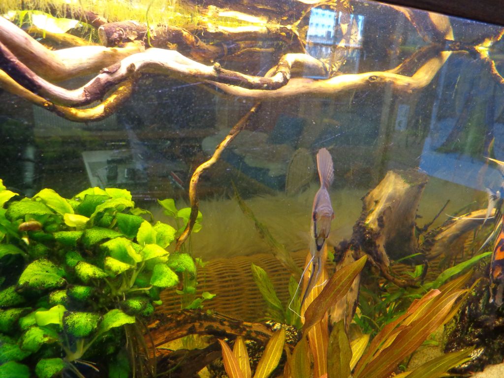 Die aufliegenden Äste (alte abgelagerte Korkenzieherweide? haben die Scalare sofort angenommen und kabbeln sich deutlich weniger, bin echt froh das ich diese Idee hatte, erst dachte ich noch, puh die gehen gar nicht unter, aber so gefällt es uns, den Fischen und mir, noch besser.