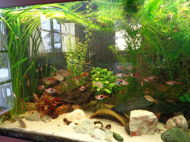 Das Becken läuft sehr stabil, alle Fische leben noch, sogar die 4 nervigsten Guppy Männchen aller Zeiten :confused: , sie sind sehr verrückt und stammen noch von vor 1-2 Jahren, von dem Nachwuchs.