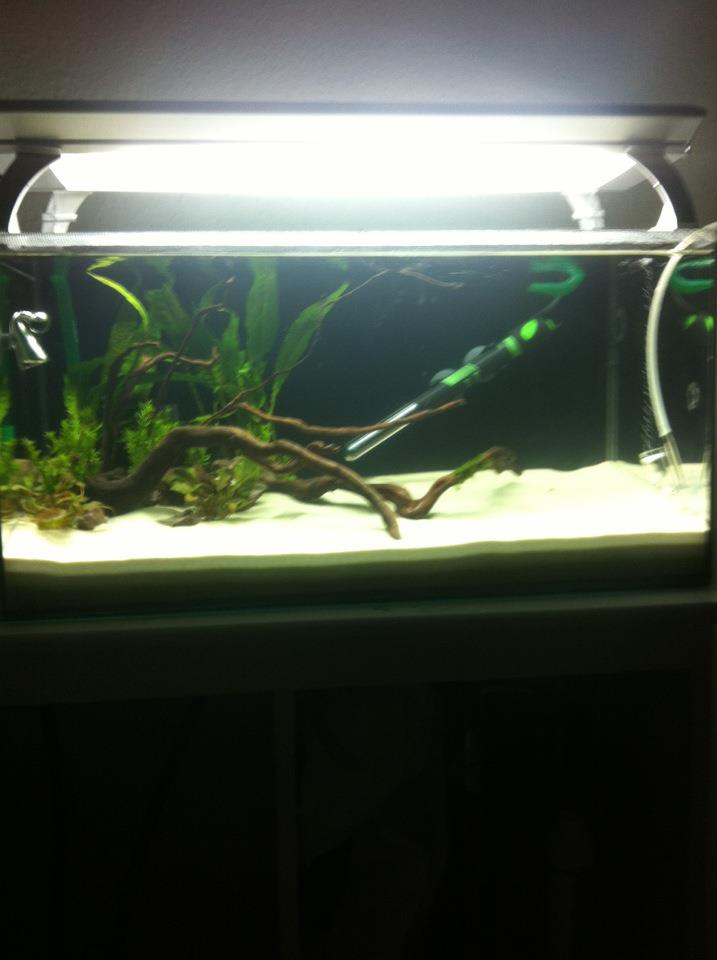 Ich wollte euch auf diesem Weg mal mein neues Corydoras pygmaeus Becken vorzeigen. Läuft jetzt seit 4 Tagen und braucht also noch ein wenig, bis die Tiere einziehen. Pflanzen müssen auch noch wachsen und die ein oder andere werde ich noch dazu kaufen. Es werden jeden Tag 5 Liter Wasser gewechselt, so komme ich in der Woche auf 35 Liter Wasseraustausch.