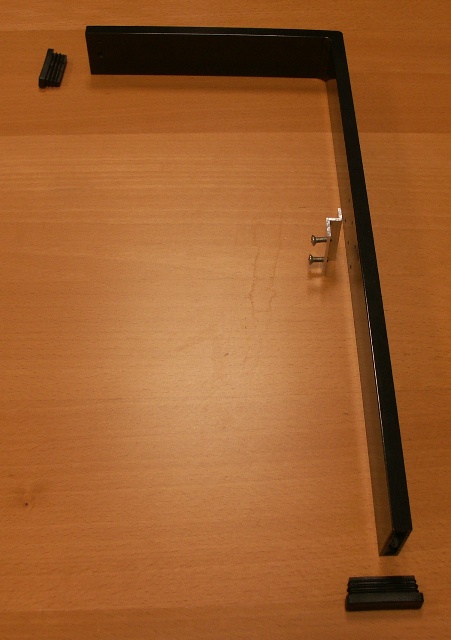 An dem Langen Schenkel wird ein Z-Profil geschraubt, welches mittels 2 Schrauben an der Scheibe festgeklemmt werden kann, der muss natürlich auch noch schwarz lackiert werden.