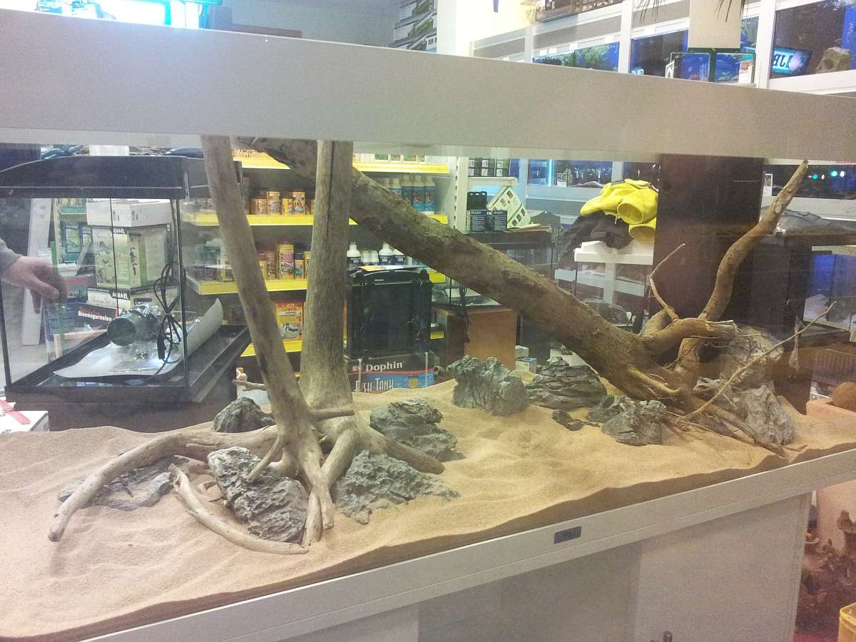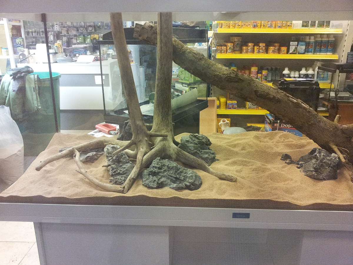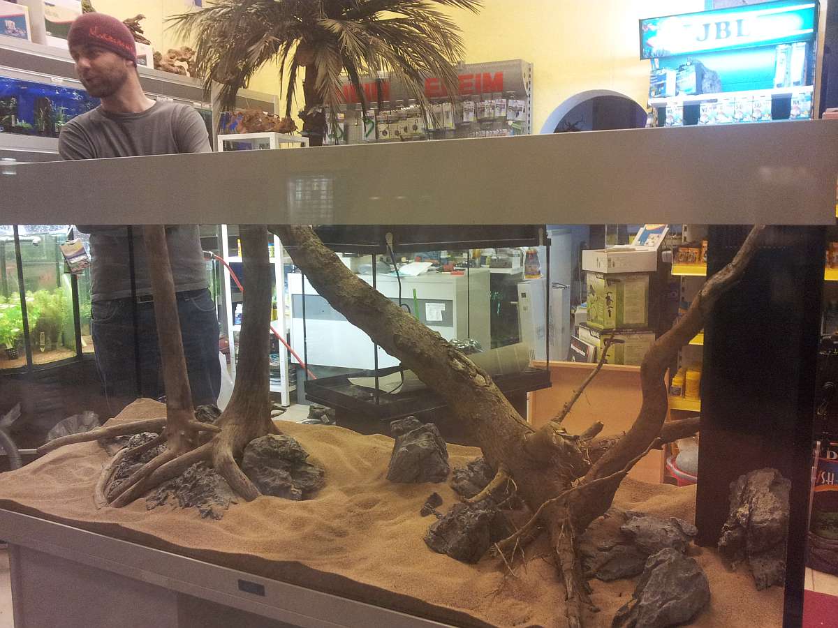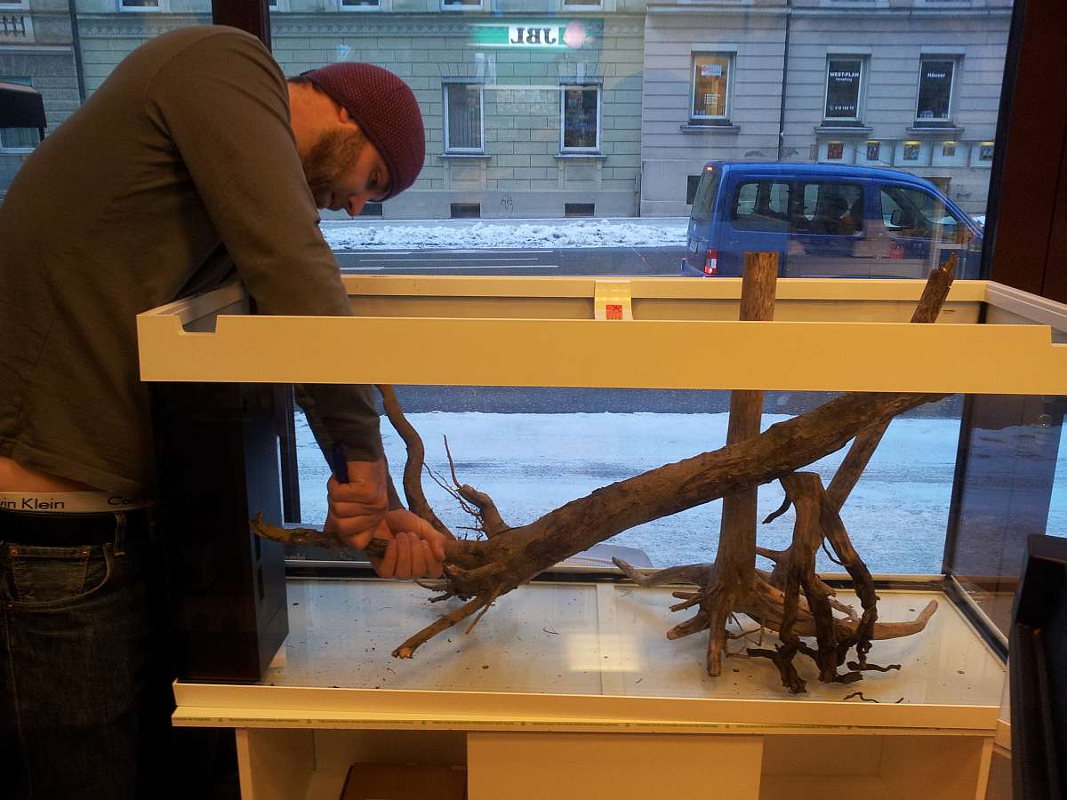 Und um 5 wollte ich mit Korbi nur mal schnell die Baumstümpfe im Original-Becken nochmal so aufstellen wie wir uns das bei mir zuhause auf dem Teppich ausgedacht hatten, um sie anschließend in der Regentonne zu ersäufen.