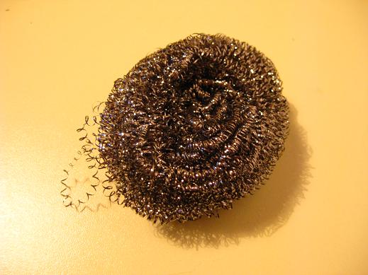 Damit es keine Mißverständnisse gibt, ich rede von Edelstahl-Spiralschwämmen, runde Pads aus gekringeltem Edelstahl.