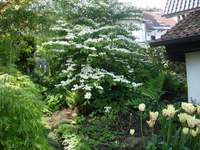 Kessi, ist kein Blütenhartriegel sondern ein Etagenschneeball, Virburnum plictatum, plictum, der echte.. kann bis 3-5 m hoch und breit werden.