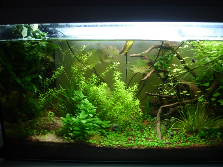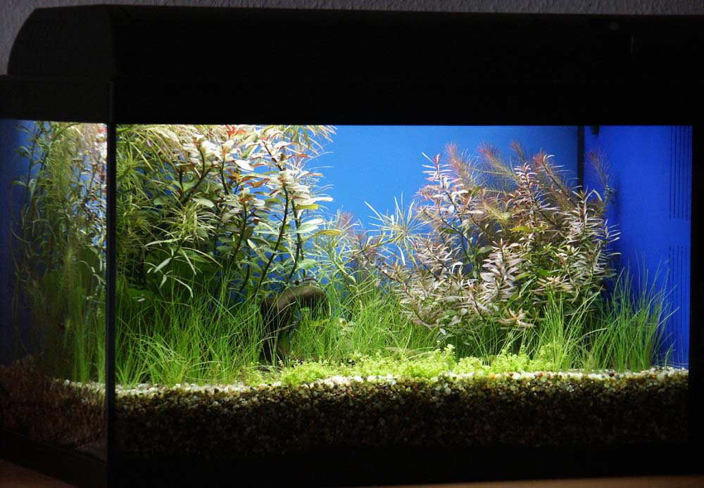 Insgesamt 4 x 15 Watt lassen jetzt in diesem Aquarium, im wahrsten Sinne des Wortes, die Sonne aufgehen. Das ist die Rettung für jedes gebrauchte Becken, was sonst im Keller landen würde. Denn jetzt macht Aquaristik wieder richtig Freude und bekommt den Anspruch den sie verdient. Nebenbei bemerkt: die Originallampe taugt in der Wurzel nichts. Sie reicht bestenfalls dazu aus, um Erdbeerpflanzen zu beleuchten.