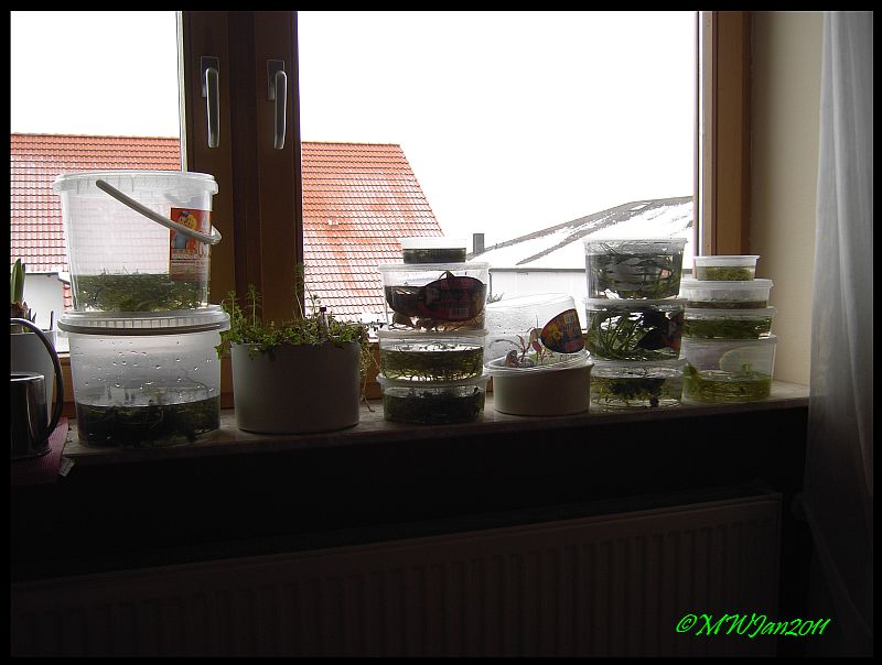 Anubien kann man prima über lange Zeit in solchen Klarsichtboxen halten..ebenso Javafarne und Bolbitis...Die Eimer von Vogelfutter oder Schokoküssen sind auch genial und etwas größer.