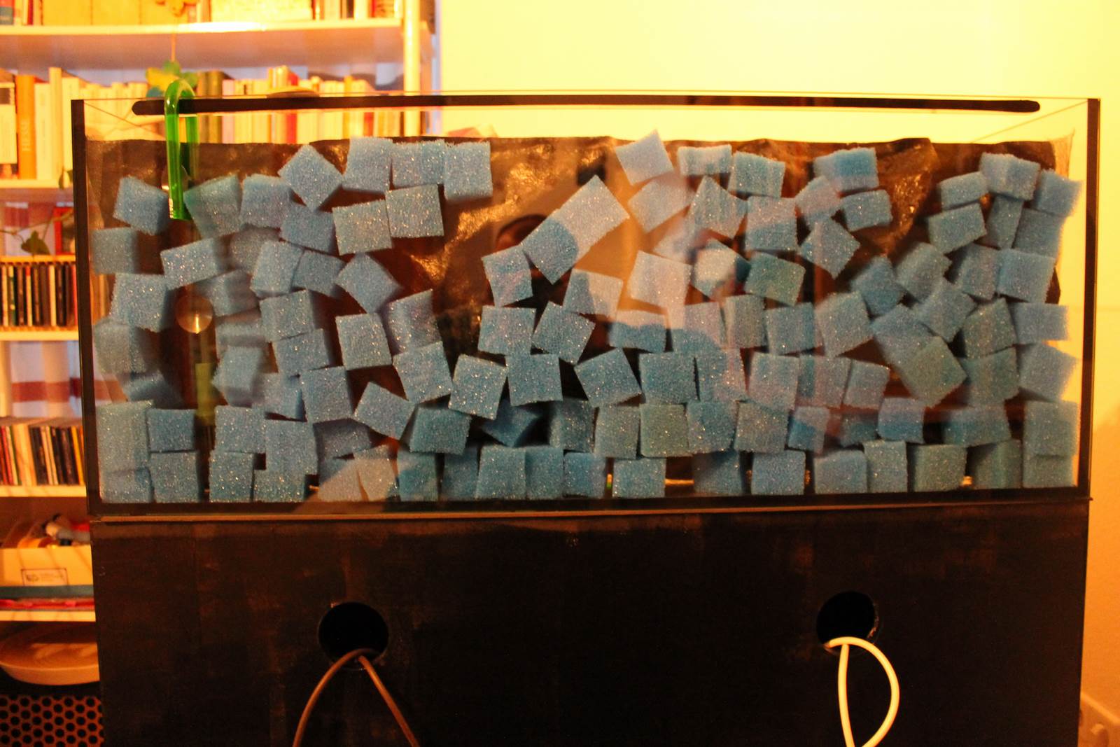 -> hier mache ich mir wegen des Kongowasserfarns Sorgen, im Netz liest man, dass er hartes Wasser und zu starke Beleuchtung nicht gut verträgt. Beschattet wird er etwas durch die Riesenvallisnerie aber zum Wasserpanschen hatte ich eigentlich keine Lust.... :confused: