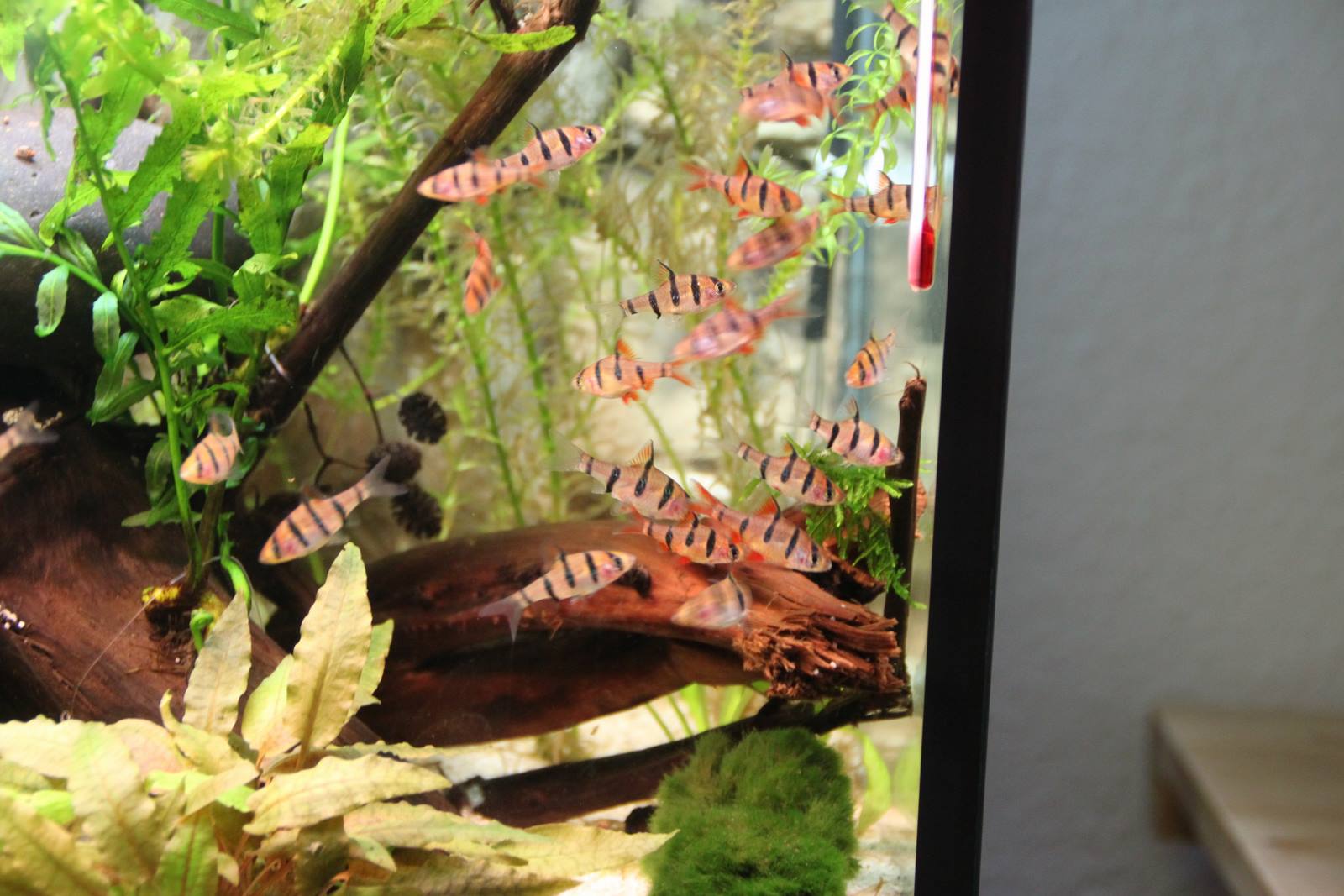 Mittwoch wird nochmal 1/3 Wasser gewechsel, ordentlich Erlenzapfen nachgelegt (pH Wert....) und Donnerstag bekomm' ich hoffentlich vom Olli einen ganzen Schwung red fire Garnelen zum "Einlaufen lassen".