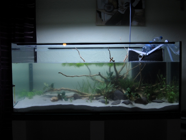 wie in der Tauschbörse angekündigt werde ich hier mal starten mein Aquarium vorzustellen. Ich bin bis auf eine kurze Liaison mit einem 54 Liter Aquarium vor zig Jahren noch blutiger Anfänger :hide: