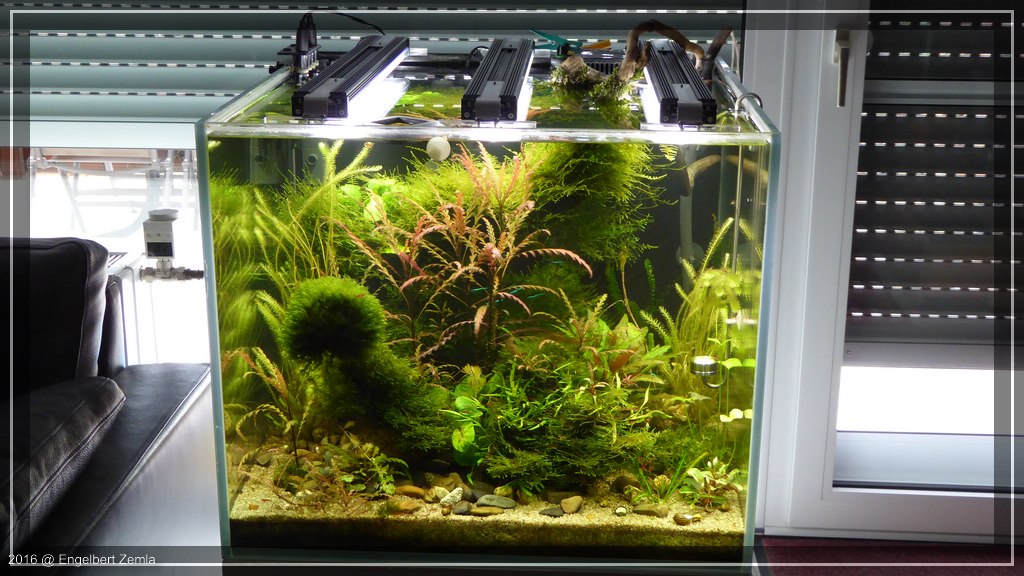 mein Becken läuft jetzt seit dem 03.12.2015 ohne Wasserwechsel und täglichem ersetzen von ca. 1,3 Verdunstungswasser durch Leitungswasser. Freitags wird mit Dennerle V30,S7 und Fe-Tabletten noch Vorgabe gedüngt.