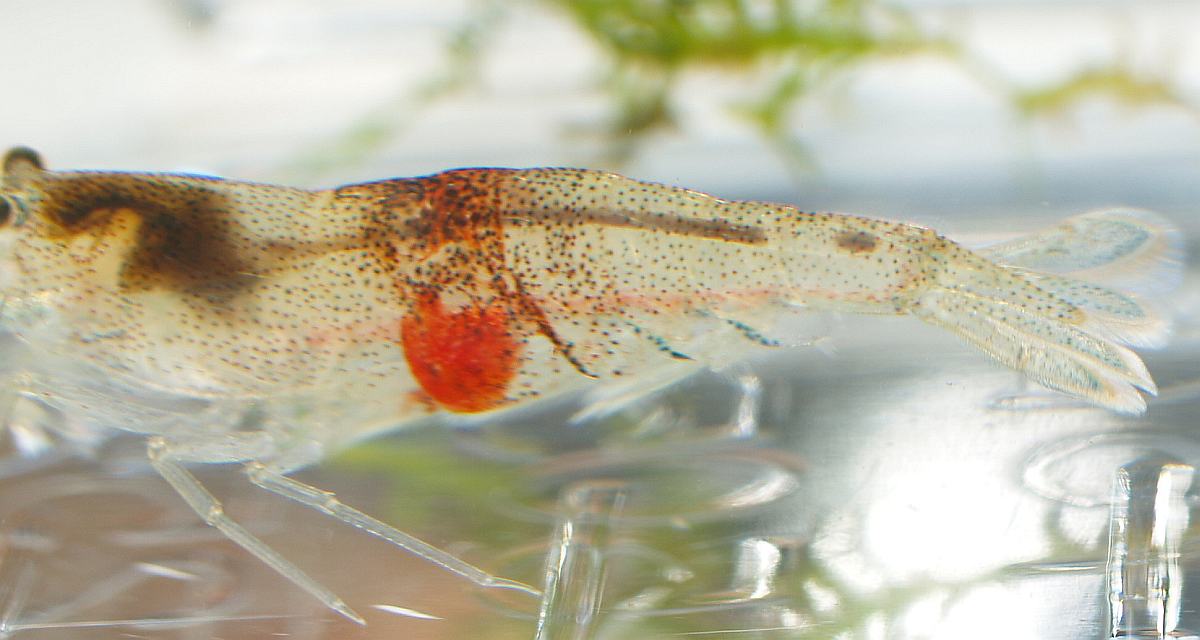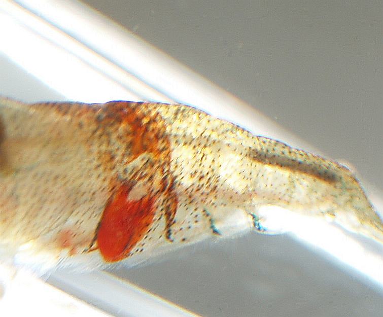 seit Wochen sehe ich hin und wieder eine Garnele mit einem roten Fleck vorbeihuschen.