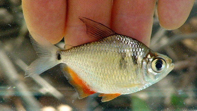 ging als erster ins Netz, dann ein Blaupunktbuntbarsch, Andinoacara cf. Pulcher, oder einer der vielen Salmler,