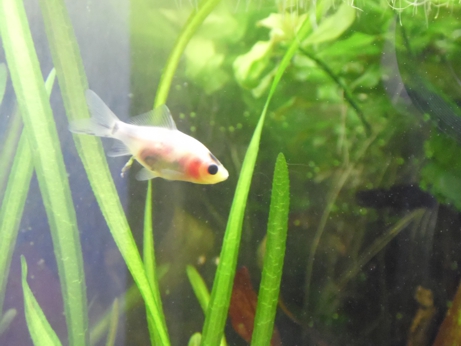gestern hab ich die Zeit genutzt und den kleinen unbekannten mal eine Weile genau beobachtet. Ich schätze nun, dass es entweder ein Goldfisch oder ein Koi ist. Er bekommt ein unregelmäßiges Muster mit schwarzen Flecken. Raubfisch etc. schließe ich aus, da er auch Pflanzliche Kost annimmt und sich immer in der Nähe der Pandas aufhält. Wenn die in ihrem Versteck liegen schwimmt er auch mit rein. Daher glaube ich, dass es ein Gruppentier ist. Also Koi oder Goldfisch.