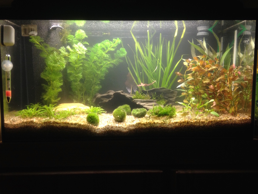 Die Pogostemons wachsen langsam aber schön, Echinodorus bilden viele Ausläufer. Der Farn geht wahrscheinlich ein. Ganze Triebe werden erst schwarz und verfaulen dann an der Wurzel. Der wird nicht zu retten sein. Das war eigentlich anders geplant...