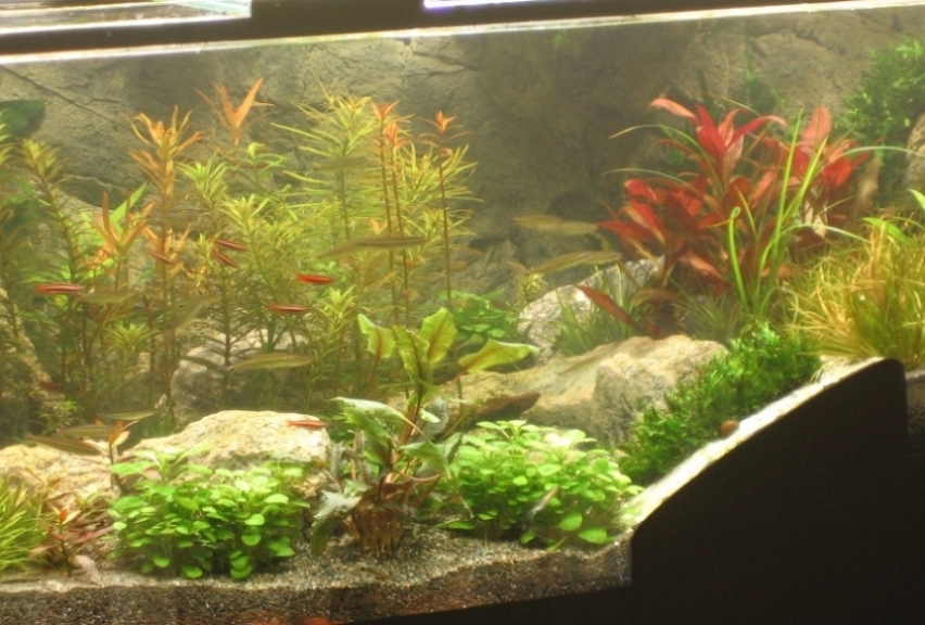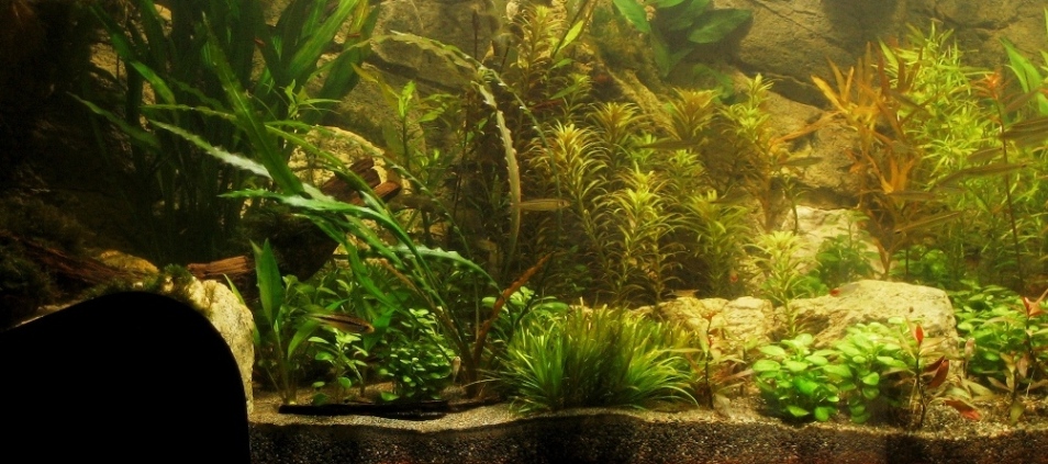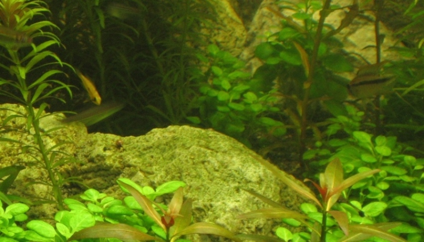 3 Wochen sind rum und die meißten Pflanzen sind ganz gut angegangen. Einzig die Ludwigia glandulosa machen mir ein bisschen Sorgen.Vielleicht liegt es daran, daas ich die vor dem umtopfen ziemlich radikal gekürzt habe. Auch mit der neuen Beleuchtung habe ich noch nicht das optimum erreicht. Auf einigen Lobelia cardinalis, die in der "prallen Sonne" stehen, tauchen grüne Punktalgen auf. Na ja, ich habe die LEDs von 90 auf 80% Leistung reduzieret und beleuchte bis auf weiteres eine Stunde weniger. Aber mit der neuen Beleuchtungssituation muss ich erst noch ein bisschen Erfahrung sammeln und rumspielen. In einigen Bereichen gibt es kieselalgenartige grüne Algen, keine Ahnung was das ist. Hab vorsorglich mal 6 Neritas eingesetzt, mal schauen.