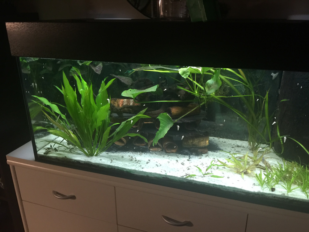 Mein jetziges Zebrawelsbecken ist klein und unpraktisch. Das neue Becken hat die Abmessungen 120x50x35cm (lxtxh).