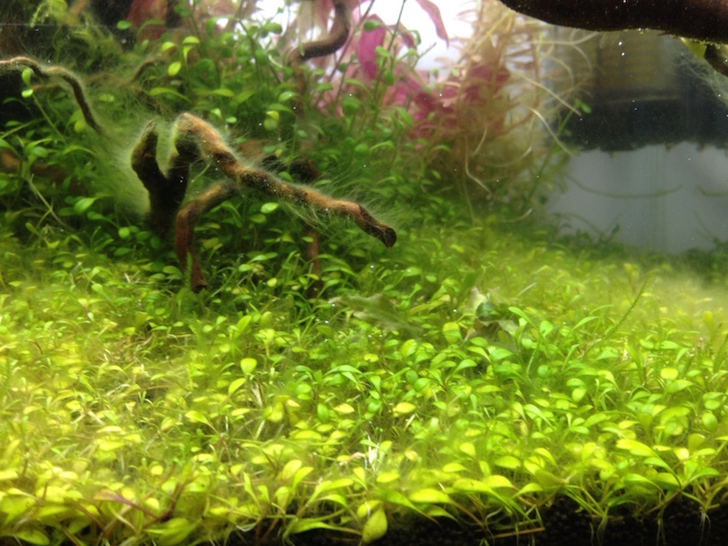 das Glossotigma ist gut angewachsen, die Hintergrundpflanzen sind OK, aber ich habe immer noch Algen, und werde die irgendwie nicht los (Bilder),