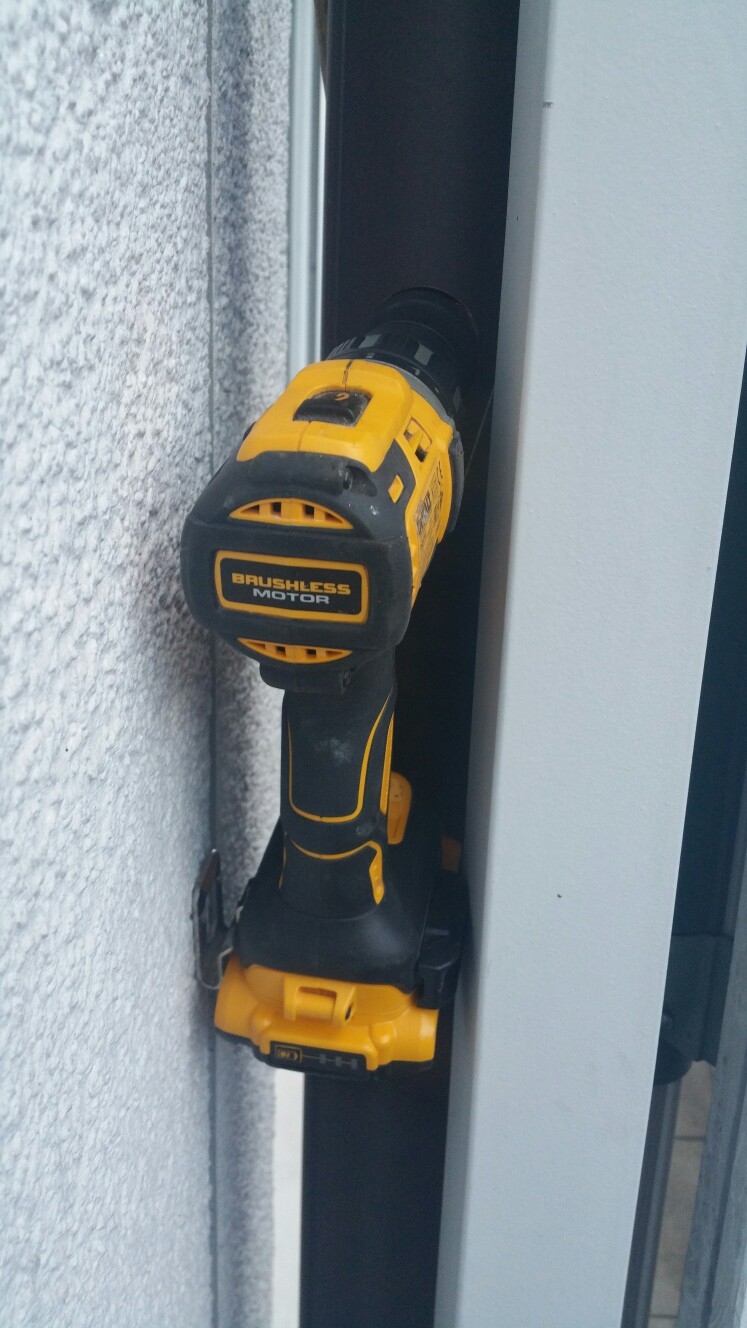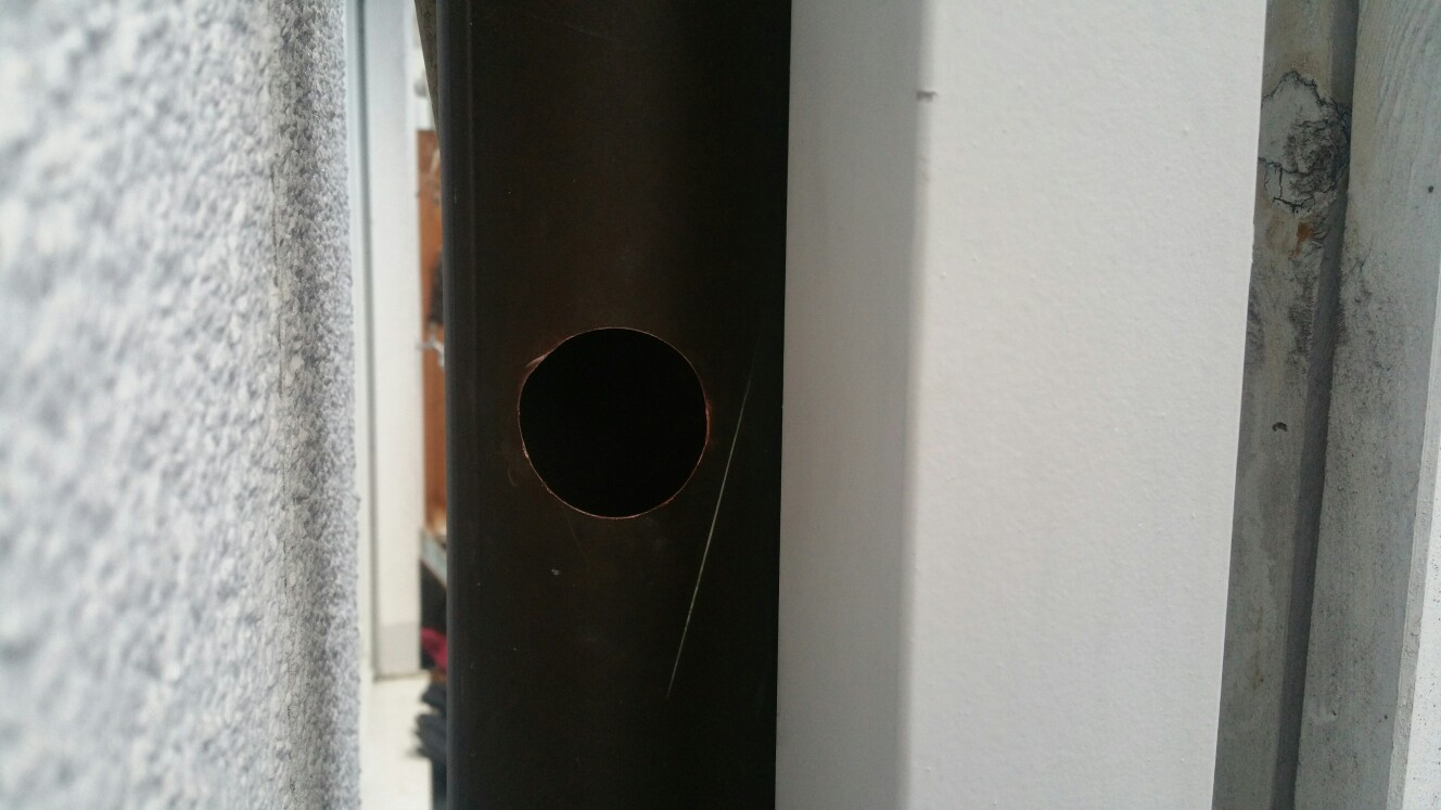 Bin gestern von der Arbeit zur Tür rein und hab sofort angefangen das Dachrinnenfallroh meines Nachbarn für die mitgelieferte Kreissäge anzubohren.
