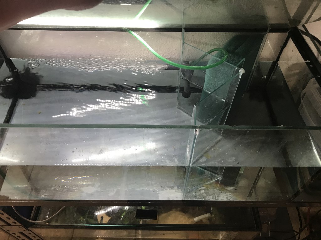würde hier gerne die Entstehung eines Keilbeckens dokumentieren. Ich bin unten in meinem Keller immer ein wenig was am nachziehen. Darunter auch Dario sp. Myanmar black Tiger. Von diesen hatte ich schon große Mengen nachgezogen, die ich aber dann nicht los geworden bin. Daraufhin habe ich die Nachzucht dieser kleinen Räuber fast eingestellt, so das nun nur noch 8 Tiere bei mir in zwei Aquarien schwimmen. Und wie das immer so ist fragen nun etliche Leuchte nach ob ich noch Nachzuchten zur Abgabe hätte. Da ich die Vermehrung aber nicht mehr so aufwändig gestallten will, habe ich mich entschlossen ein Keilbecken aus einem der selbstgebauten 70x30x30 Aquarien zu bauen. Habe dazu 3mm starkes Glas in unterschiedlich dicke Streifen geschnitten und danach mit Nassschleifpapier die Schnittkante entschärft. In einen der Steifen wurde dann ein 16mm Loch gebohrt, um den Auslass des Lufthebers duch zu stecken. Dann wurde das Glas in Keilform in das Aquarium eingeklebt.