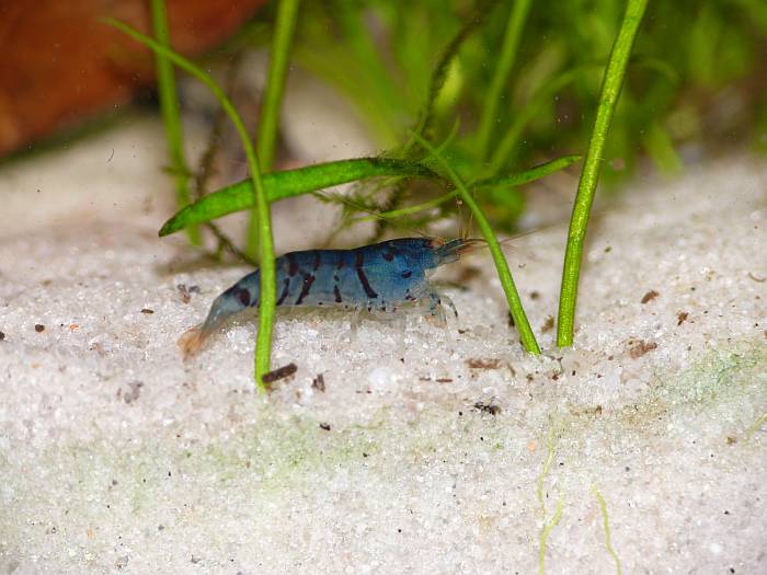 Bei den Tigergarnelen kommt nur wenig Nachwuchs durch. Vielleicht werde ich die dunkelsten Tiere mal in ein anderes Becken setzen.