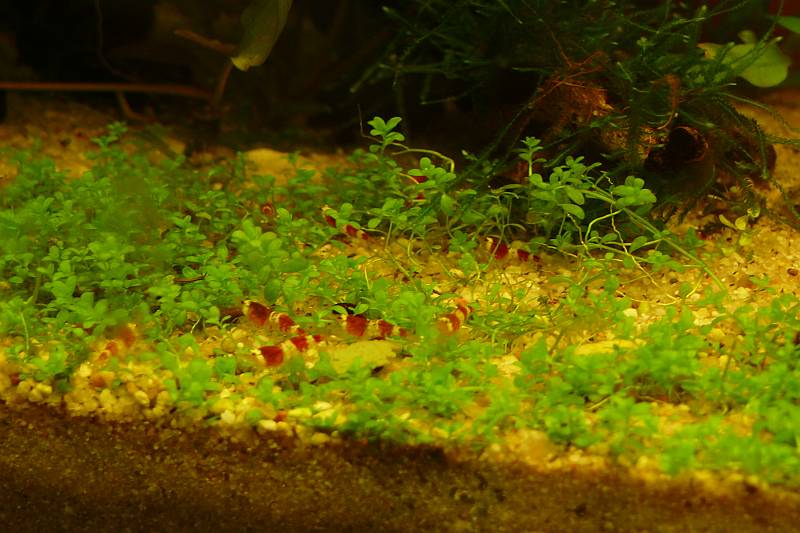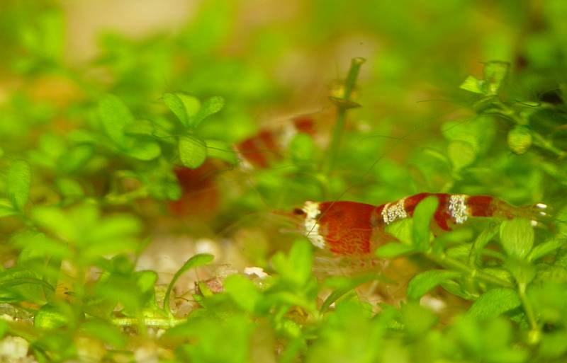 ... und noch ein paar Crystal Red Garnelen. Die find ich einfach nur wunderschön, das rot-weiß ist auf saftig-grün eine Augenweide. :happy: