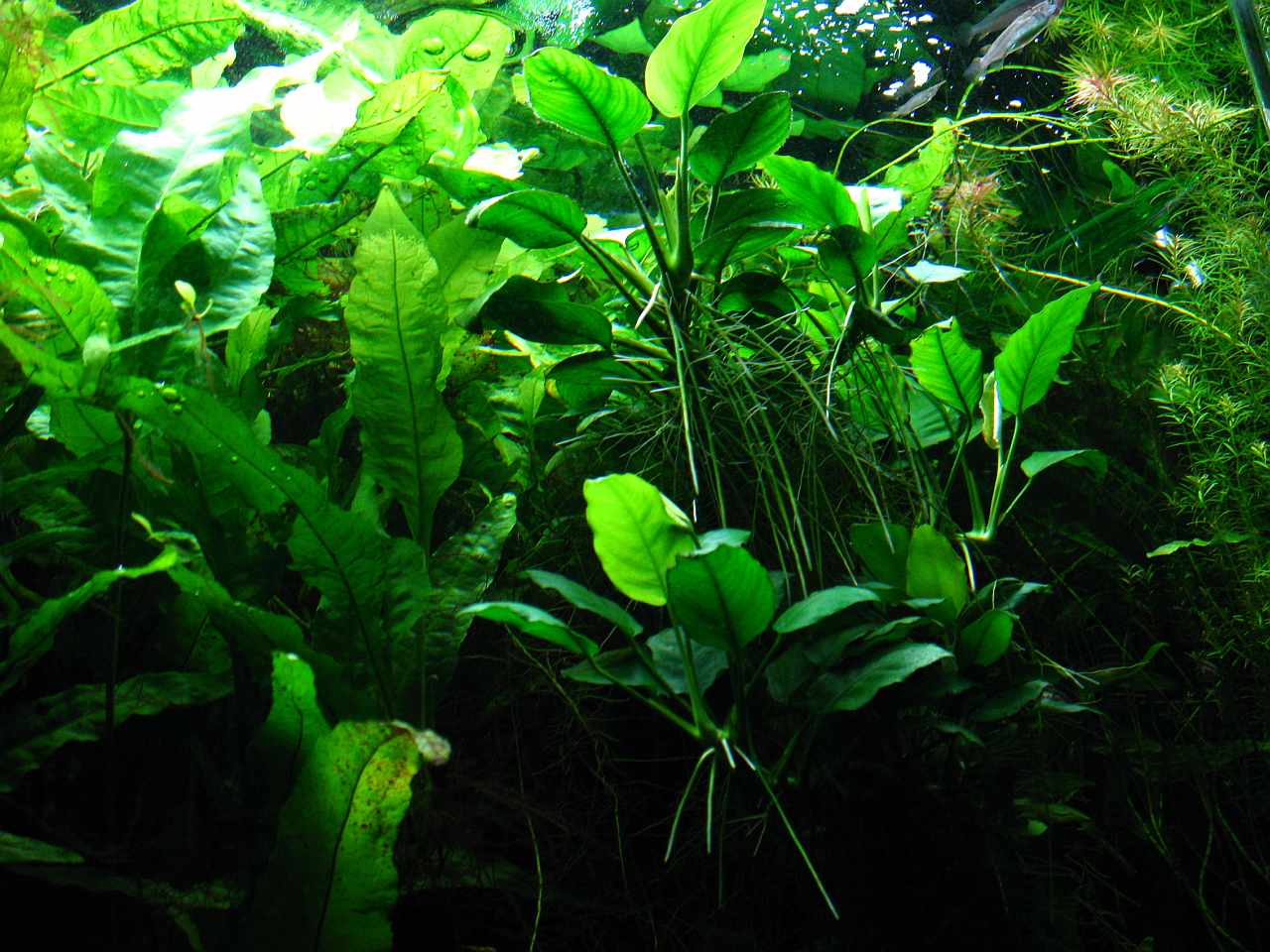 Nach einer 6-Tages Dunkelkur mit abgehängten Scheiben gegen Restlicht von außen, war diese Plage aber gleich auf den ersten Versuch restlos beseitigt. Allerdings sahen meine Stengelpflanzen danach auch übel aus und mein Wassernabel hatte kein einziges Blatt mehr.