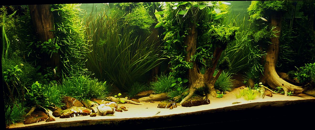 Trotz der Dunkelheit sind alle anderen Pflanzen (selbst die Blyxa am Boden) auch gewachsen und das Becken sieht schon wieder prima aus.