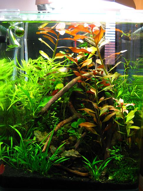 Die Garnelen bleiben drin, die Fische kommen zunächst in einen 30l Cube, der im Moment noch ein paar hundert km entfernt in der Garage steht.