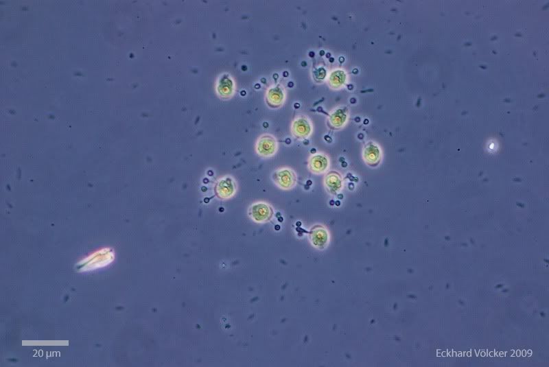 Hier sieht man die "Schwärmer" die an die Algenzellen "andocken".