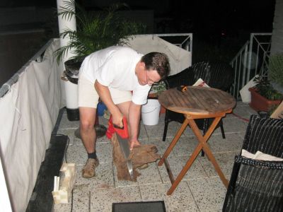 Das Zurechtsägen der Mangroven mit dem Fuchsschwanz war übrigens ein aussichtsloser Versuch. Es ist eines der härtesten Hölzer, die es gibt, eben um so lange im Wasser zu überleben. Mir kam, dem Himmel sei Dank, mein Nachbar zu Hilfe, seines Zeichens ein bestgerüsteter Fliesenleger, und selbst er hat gestaunt, als er auf seine oszillierenden Feinsägen schließlich Metallsägeblätter aufschrauben musste, um überhaupt durch dieses Holz zu kommen.