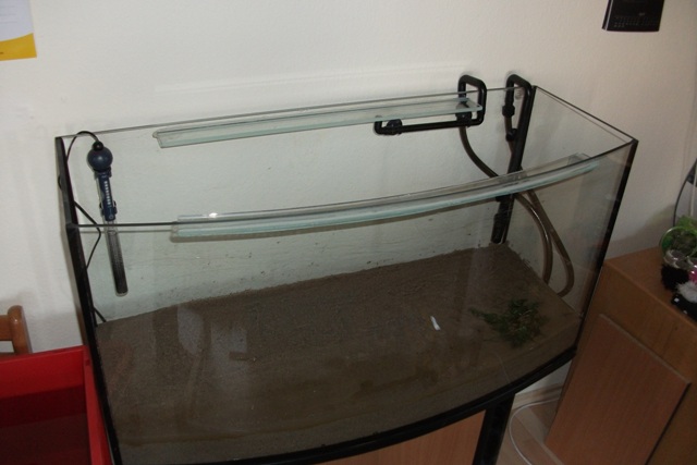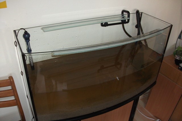 Insgesamt habe ich einen ganzen Tag damit verbracht, das alte Becken zu leeren und das neue komplett einzurichten. Das Wasser vom ehemaligen 84 l Becken kam natürlich komplett ins neue.