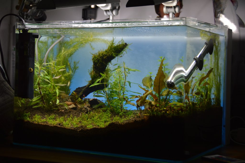 nachdem ich die bilder vom Dschungel reingestellt habe, richtete ich gestern nun dieses 38 Liter becken neu ein. als Inspiration dienten tatsächlich einige Bilder von meiner Reise. Dieses Layout hat noch keinen Namen, aber ich denke ich werde den Begriff "Speerspitze" im Grünen wieder aufgreifen, den ich einmal in einem 20er ausprobieren wollte.